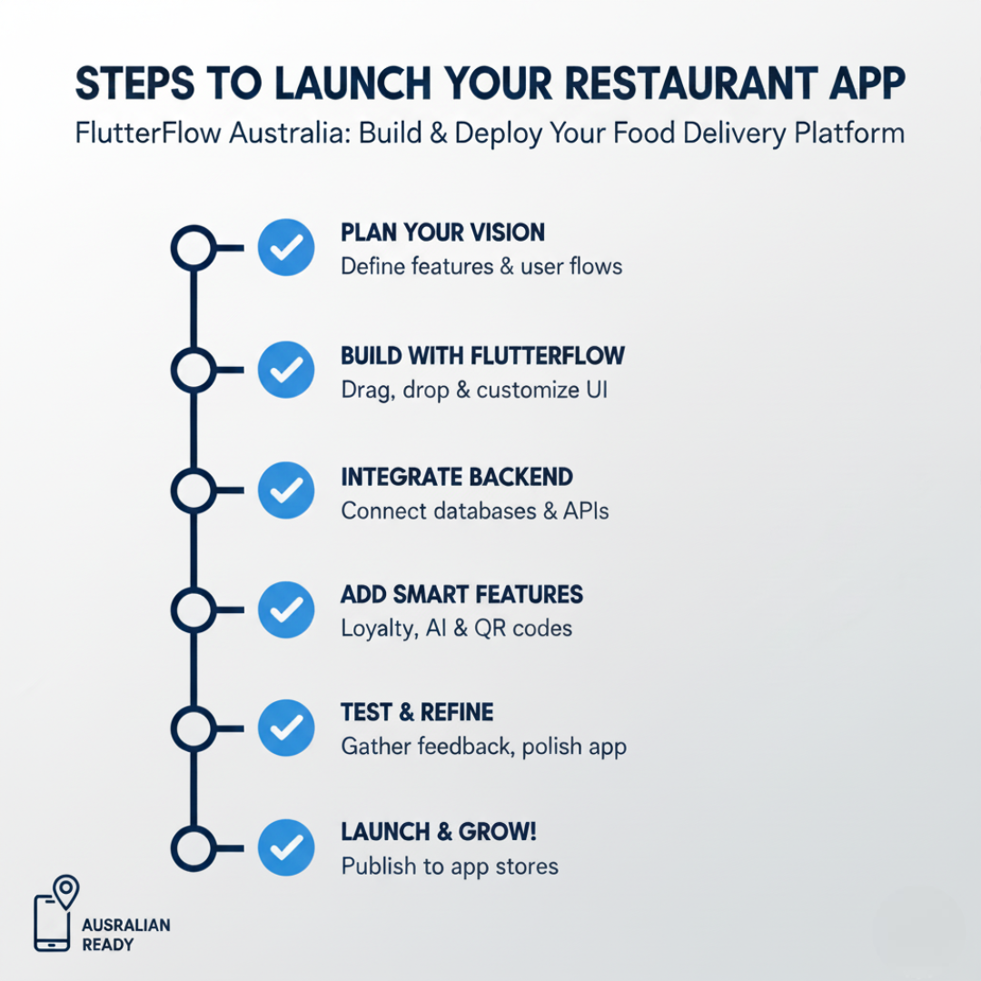 Follow these six steps for creating a successful FlutterFlow food delivery app in Australia:
